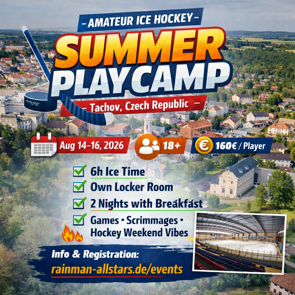 NOTICE: "CAMPS" ARE NOT A TOURNAMENT!! ONLY INDIVIDUAL ADULT PLAYERS AND NO TEAMS, CAN REGISTER FOR THESE DATES!! WE JUST BOOK ICE TIMES TO PLAY WITH ALL PARTICPANTS, WITHOUT DOGGED SERIOUSNESS, WHERE THE FOCUS IS ON FUN!! A MAXIMUM OF 20 PLAYERS AND 3 GOALIES CAN REGISTER PER CAMP. All levels and all ages (18+) are welcome. Women PLAYERS and under 18 PLAYERS, with a parent participating, are also welcome.